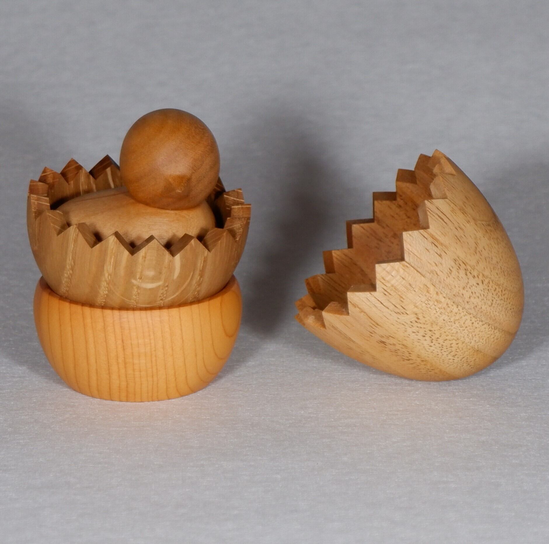 天然木のため、同じ種類の木材でもそれぞれ杢目、色艶なども違い何一つ同じ物はありません。湿度や木材の個体差等で多少ズレがありますご了承ください。投げたり振り回すなどしないで下さい。 たまごのギザギザ部分に気をつけて下さい。【対象年齢5歳】