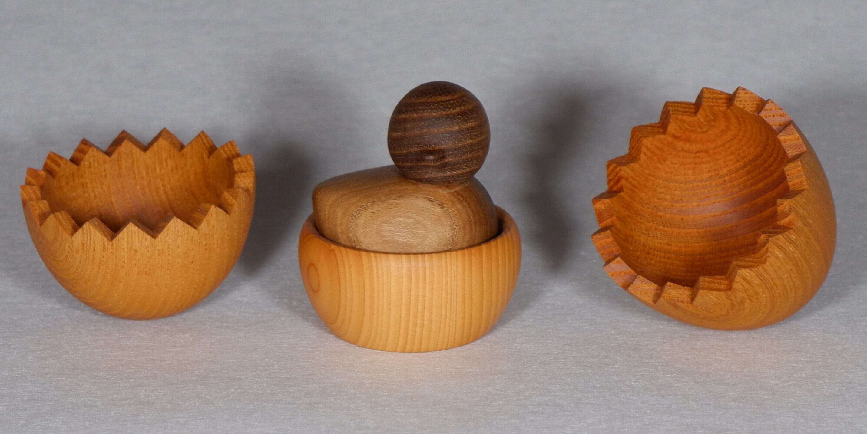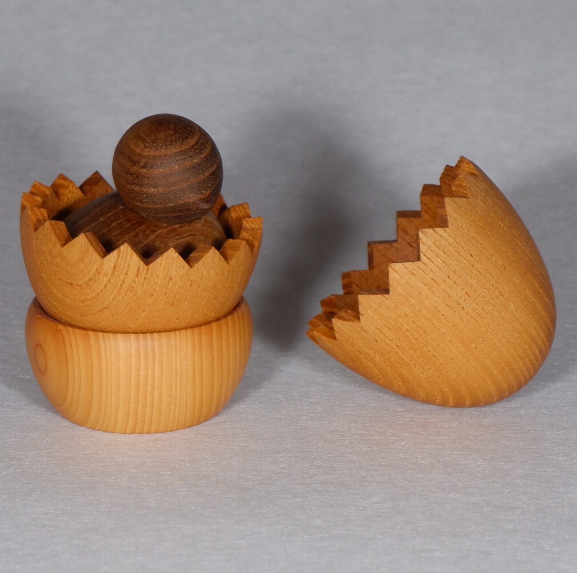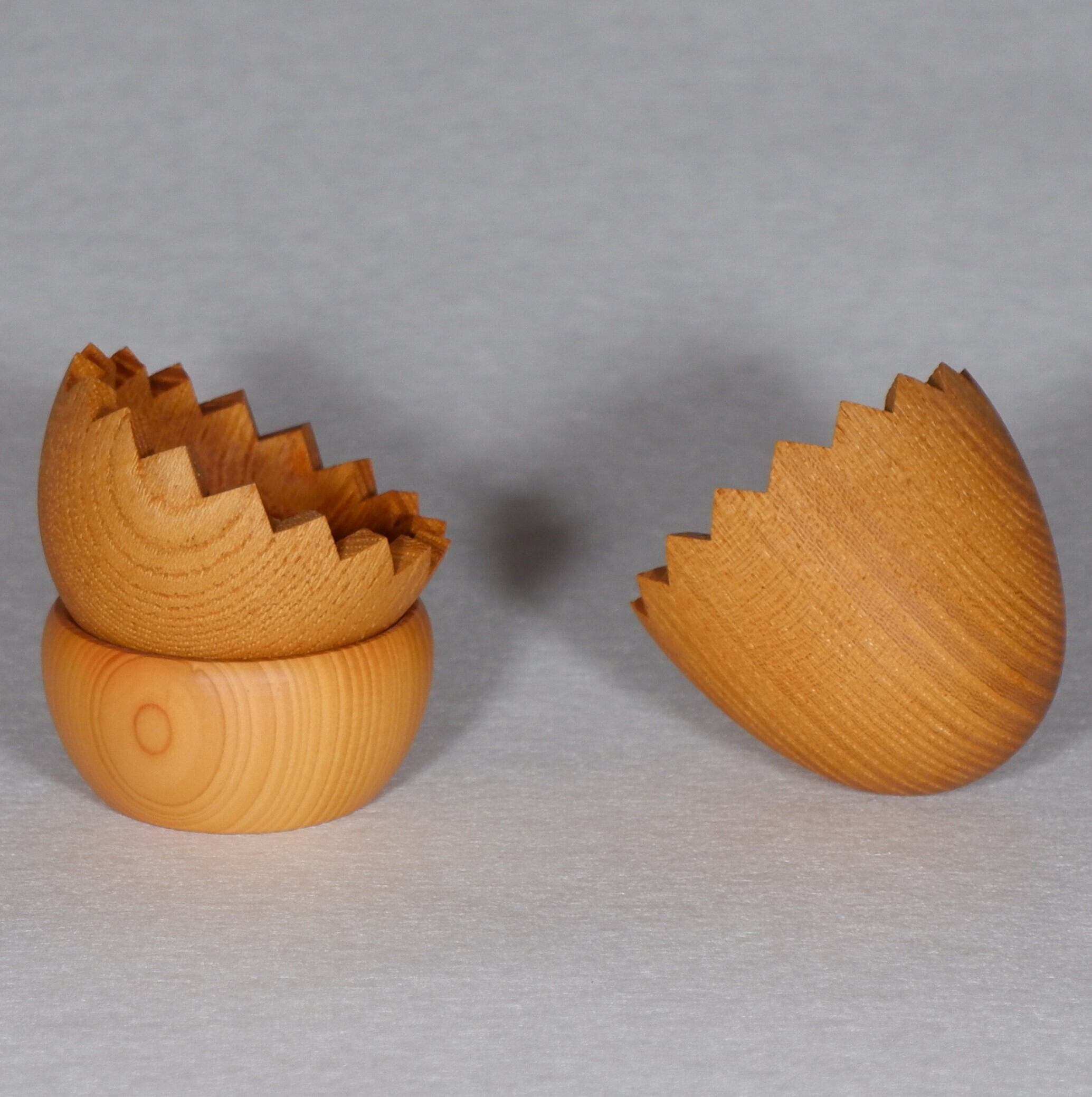 天然木のため、同じ種類の木材でもそれぞれ杢目、色艶なども違い何一つ同じ物はありません。湿度や木材の個体差等で多少ズレがありますご了承ください。投げたり振り回すなどしないで下さい。 たまごのギザギザ部分に気をつけて下さい。【対象年齢5歳】