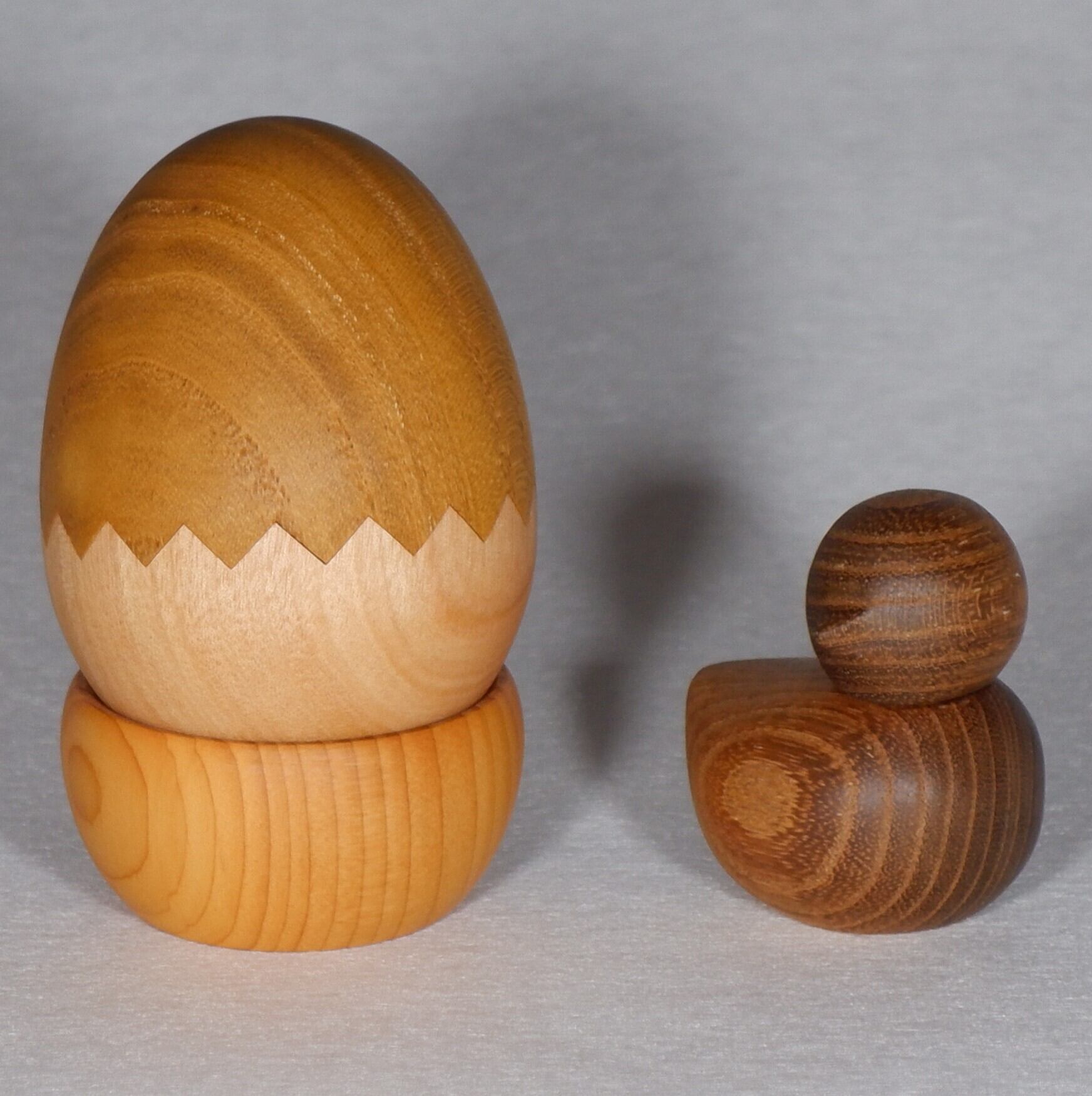 天然木のため、同じ種類の木材でもそれぞれ杢目、色艶なども違い何一つ同じ物はありません。湿度や木材の個体差等で多少ズレがありますご了承ください。投げたり振り回すなどしないで下さい。 たまごのギザギザ部分に気をつけて下さい。【対象年齢5歳】